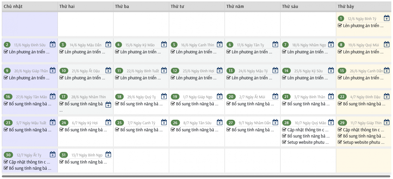 Quản lý công việc trong tháng